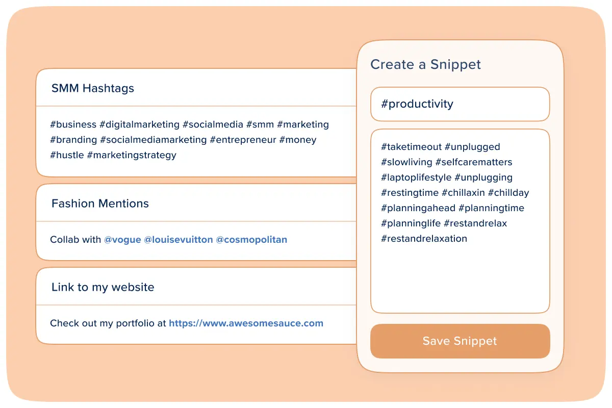 Easily mention other profiles, companies, and pages across most platforms, with built-in search and confirmation features. SmarterQueue helps you find the right accounts on Facebook and LinkedIn, while supporting @mentions on X, Instagram, and Threads. Tagged accounts can reshare your content, boosting your reach.